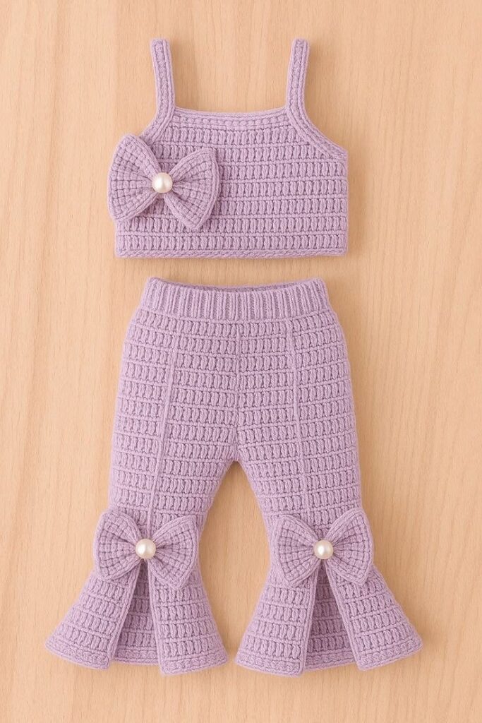 El crochet siempre nos sorprende con piezas hermosas y delicadas, perfectas para regalar o vestir a los más pequeños con un estilo único. En este tutorial te mostraré cómo hacer este conjunto de crochet para niña, compuesto por un top con tirantes y un pantalón con campana decorado con lazos y perlas. 💜