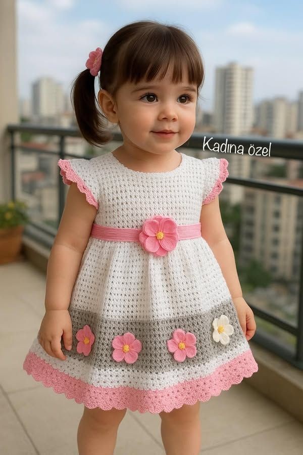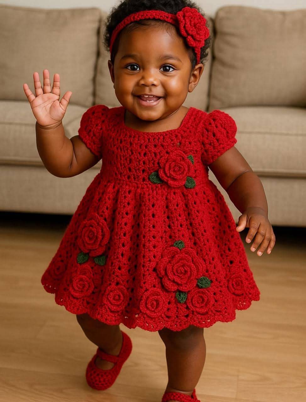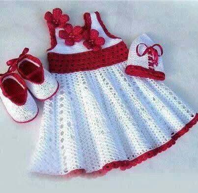 ÂżTe gustarĂa aprender a tejer un hermoso vestido a crochet para bebĂ© con sus zapatos y gorro a juego? 🌸